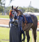 The AHAA Guidelines suggest the use of either ‘Simple Spanish Attire’, Authentic Spanish Costume or English Hacking Attire for handlers in Led Breed Classes. The following applies to both Pure and Partbred Andalusians. There is no difference in how they are presented.
