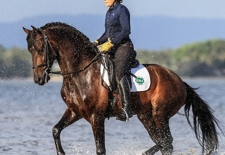 Versatile performance horse, proven in Dressage, trained in Working Equitation, shown a natural ability for jumping and his future involves cattle work. Strong boned an correct stallion with an amazing personality.